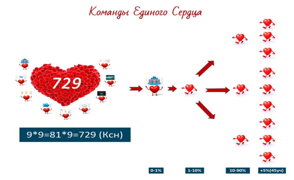 Вы возможно будете удивлены, но пришли вы на эту Землю не один, а как целое общество похожих и родных по Душе людей, которое называется Единое Сердце. Количество участников такой Команды от 9 человек, и полный материализованный состав участников – 729 человек, что составляет собой одну Нишу (Государство). Произвести такое Сердце из живых людей, у которых Сердца тоже тянутся к счастью, – и есть то самое настоящее счастье, которое интуитивно ищут все люди, как бы имея в памяти то, за чем они родились на этой Планете.